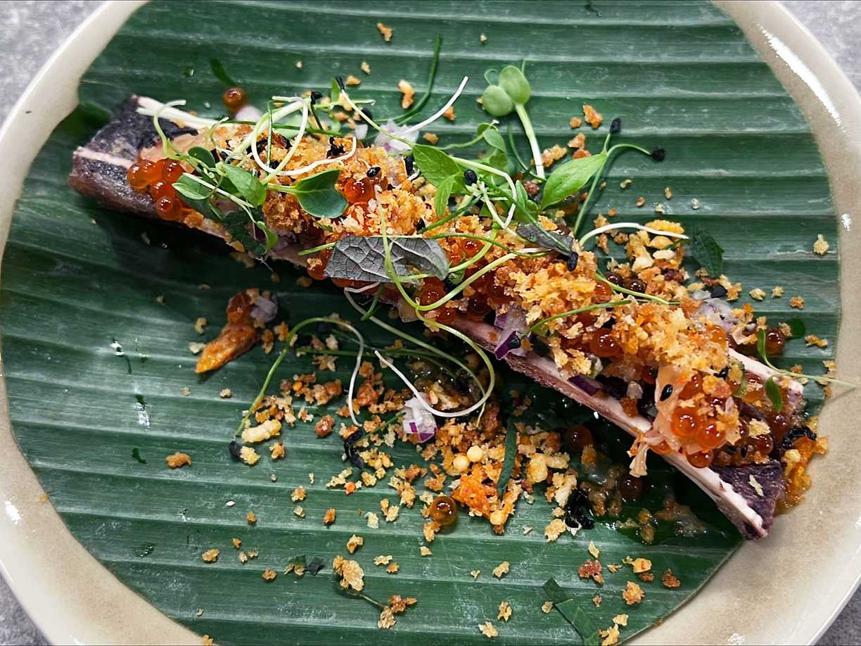 Märgben gratinerade med panko och som serveras med forellrom är en riktigt värmande och god rätt att njuta av i höstrusket.