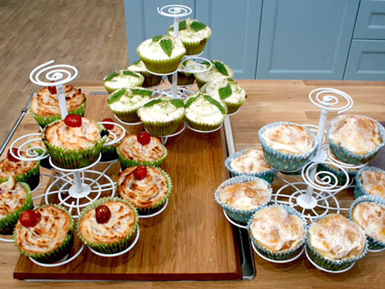 Halvgrädda cupcakesen och tag ut dem från ugnen. Garnera varja cupcake med en äppelklyfta. Grädda klart. Under tiden kokas en aprikotyr av passerad aprikosmarmelad. Aprikosmarmelad läggs i kastrull och blandas med citronsaft. Koka ca 10 minuter till en seg massa. När bakverken är färdiggräddade penslas äppelklyftan rikligt med aprikotyr.