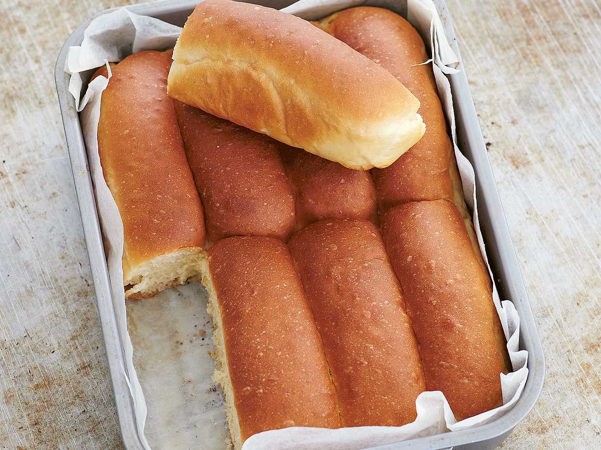 Bryt isär korvbröden när de har svalnat. Låt svalna i formen.