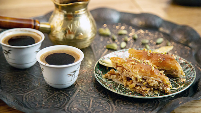 Mellanösterns populäraste bakverk, baklavan, står i fokus. Zeina visar även hur du kokar smakrikt kaffe i ibrik.