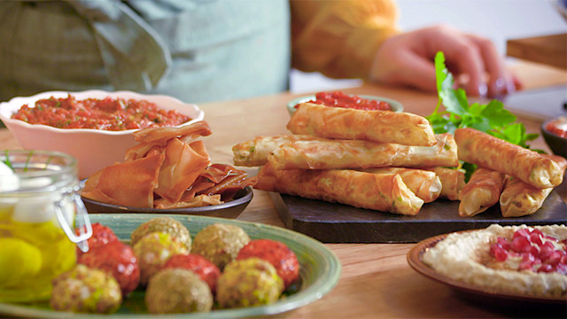 Lär dig vad meze är och hur du gör matbordet till en smakresa till Mellanöstern med härliga smårätter. Zeina visar även hur du gör perfekt falafel.