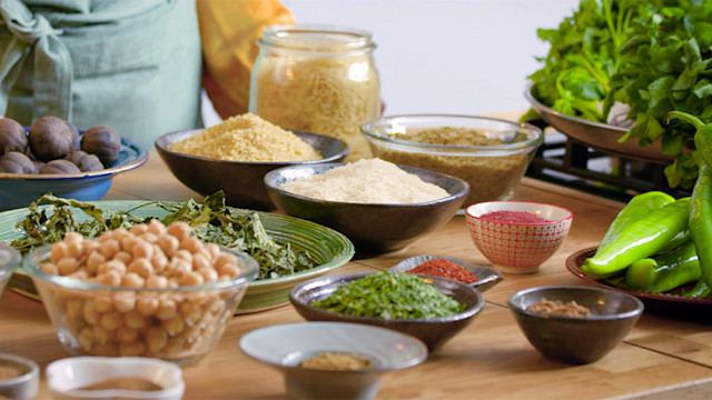 Zeina lär dig allt du behöver veta om bulgur och ris. Hon visar hur du gör ”drottningen av ris” ett härligt fluffigt persiskt ris med krispig botten – Tadig.