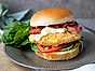 Servera med hamburgerbröd och tillbehör som till exempel majonnäs, sallad, tomat, rödlök och bacon.