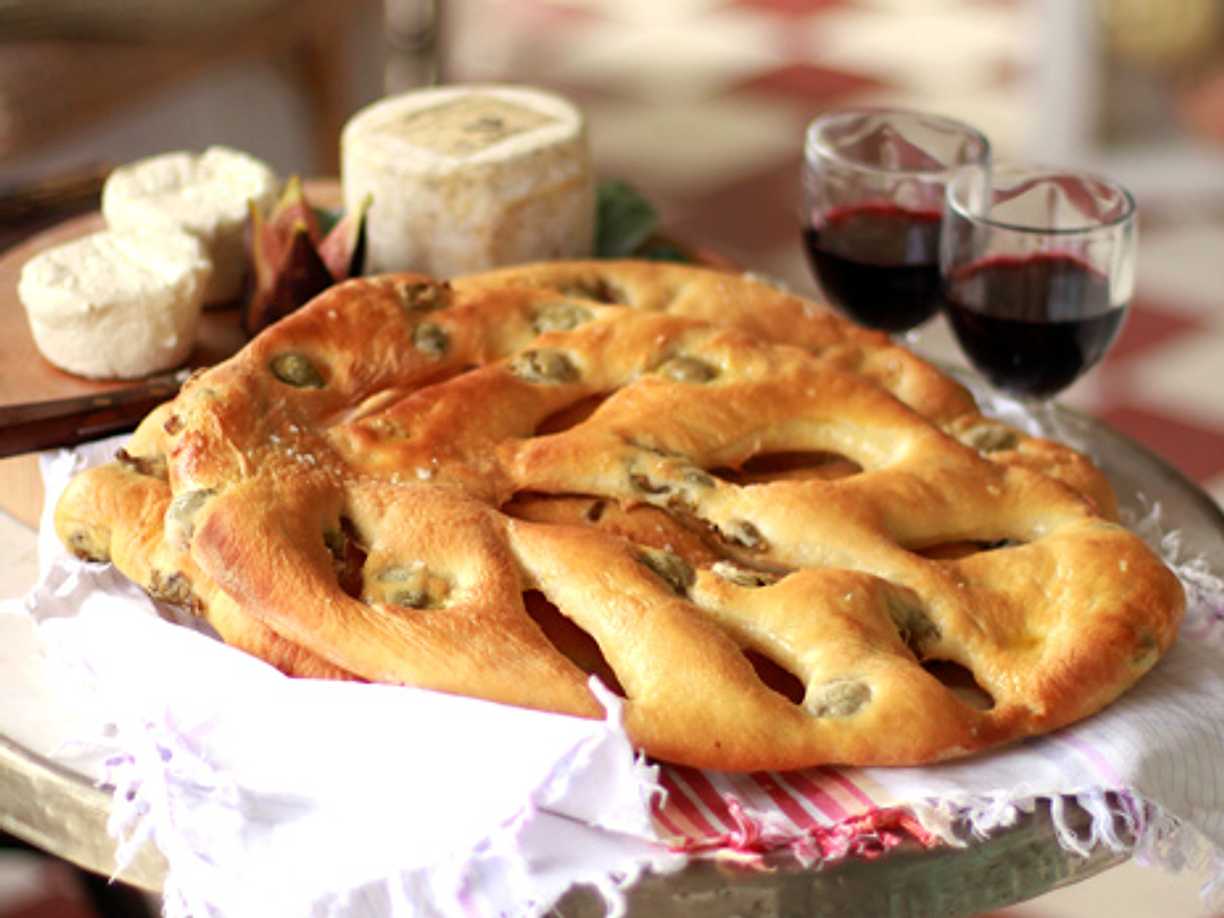 Snitta fyra snitt diagonalt på varje sida av brödet och ett långt i mitten.