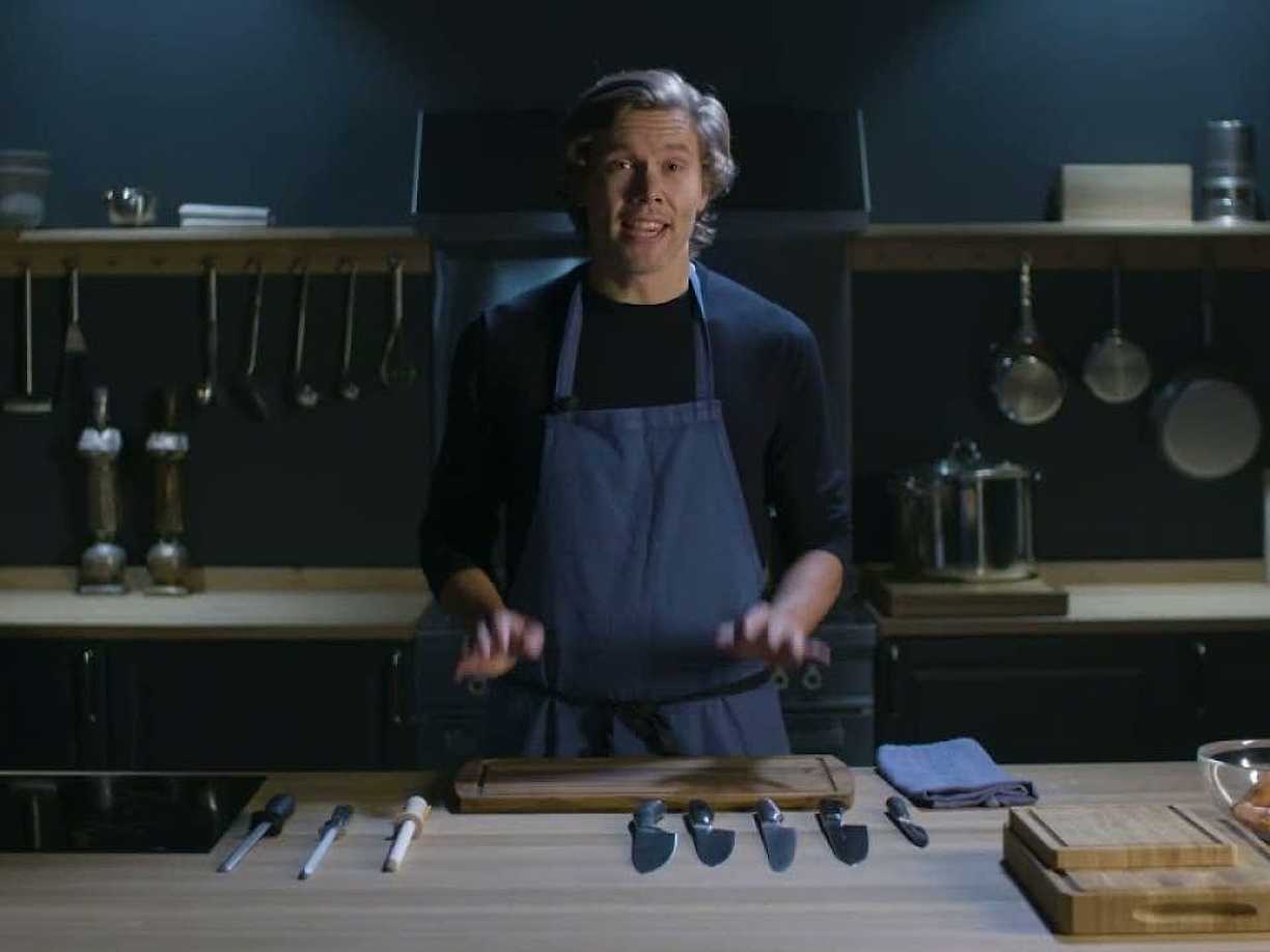 I onlinekursen Bli en mästare på såser bjuder kocken Tommy Myllymäki på massor av tips och trix som gör dig bättre i köket i allmänhet och såklart på att fixa goda såser i synnerhet. I klippet ovan pratar han om kockens kanske viktigaste vapen - kniven - och tipsar om 3 bra knivar som man kommer riktigt långt med i hemmaköket. Se trailer för Tommy Myllymäkis kurs